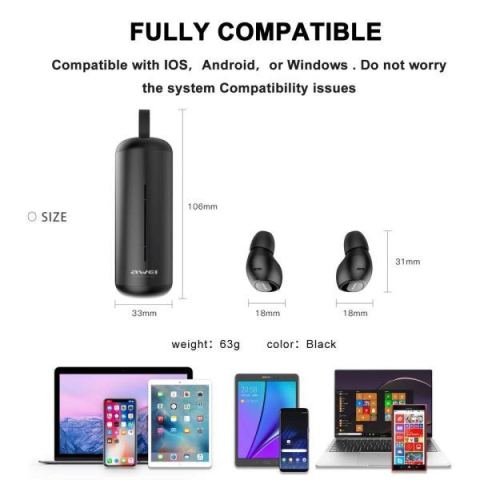 AWEI T5 is compatible with the iPhoneX iPhone 8,8 Plus iPhone 7, 7 Plus, 6s, 6s Plus, 6, 6 Plus, SE, 5s, 5, 4s, iPod, iPad, iPad Mini, iPad Pro, Macbook, Macbook Air, Macbook Pro, iMac, Mac Pro, Mac Mini, Samsung Galaxy S9 S8 S7 S6, S5, S4, S6 Edge, Edge+, 7, 6, 5, 4, 3, Edge, Android, Windows, tablets, laptops, computers.