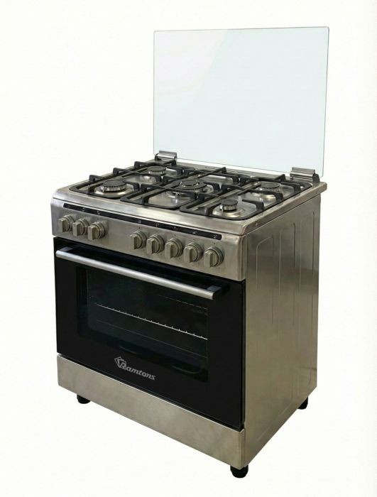 Designed with five powerful gas burners and a spacious 90X60 hob, this cooker ensures even heat distribution thanks to its innovative pool burners, helping you save on gas while cooking perfectly. The built-in mechanical timer offers precise cooking control, while the oven lamp lets you monitor your meals without opening the door. With features like an integrated ignition for match-free lighting, a glass top lid to prevent spills, and a gas leak sensor for safety, this stove elevates your cooking experience. Plus, the turbo fan circulates heat for faster cooking, and with the included oven tray and grid, you can easily prepare delicious roasts, including perfectly golden chicken on the rotisserie.