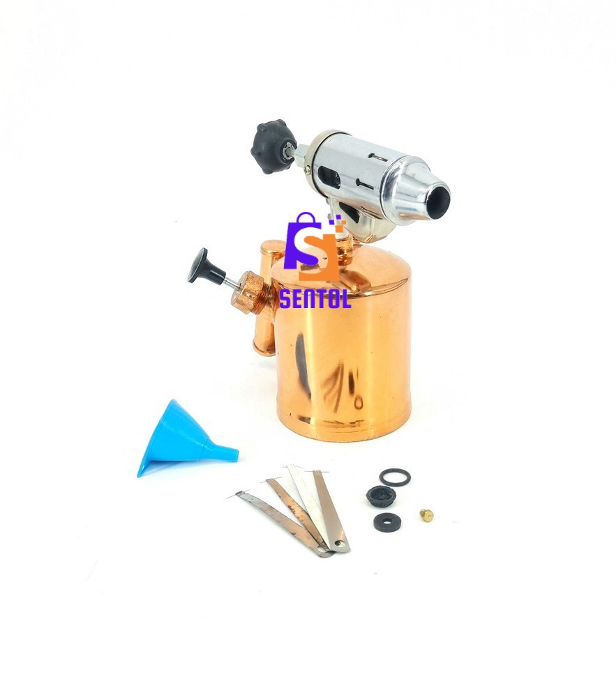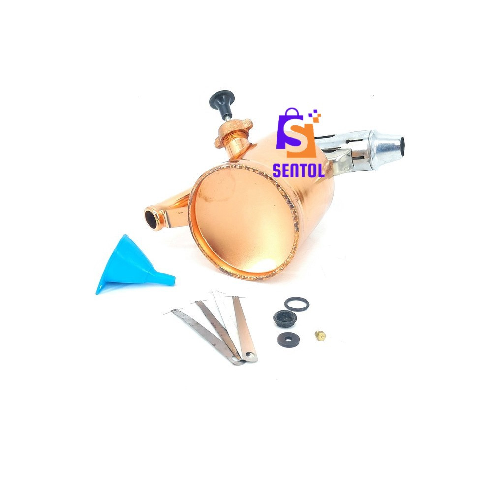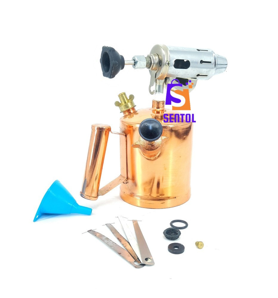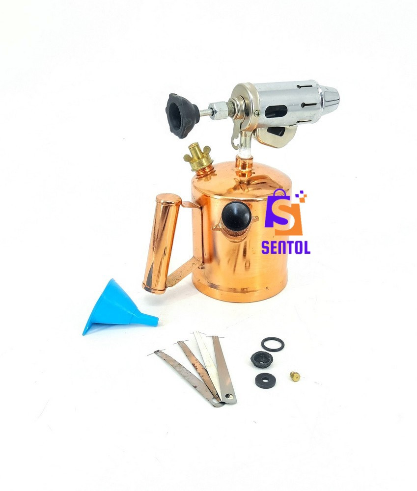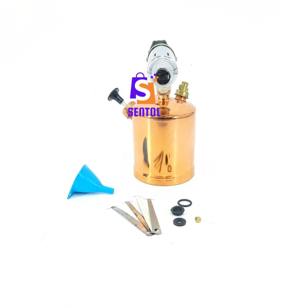 - Package includes: 1.0L Blow lamp, 4x pins, 1x brass spare nozzle, 2x spare O rings, 1x spare pump piston rubber end, 1x plastic funnel with sieve