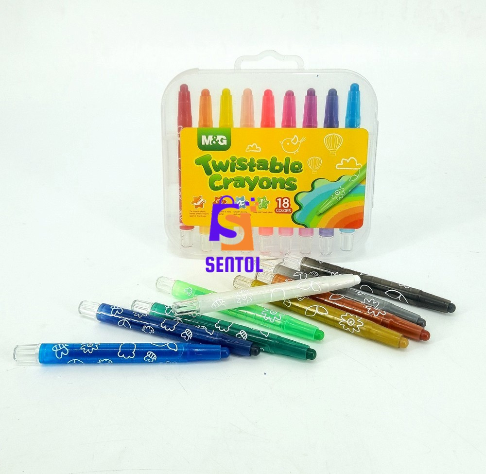 - 18 Non-toxic, washable, retractable crayons in vibrant colors