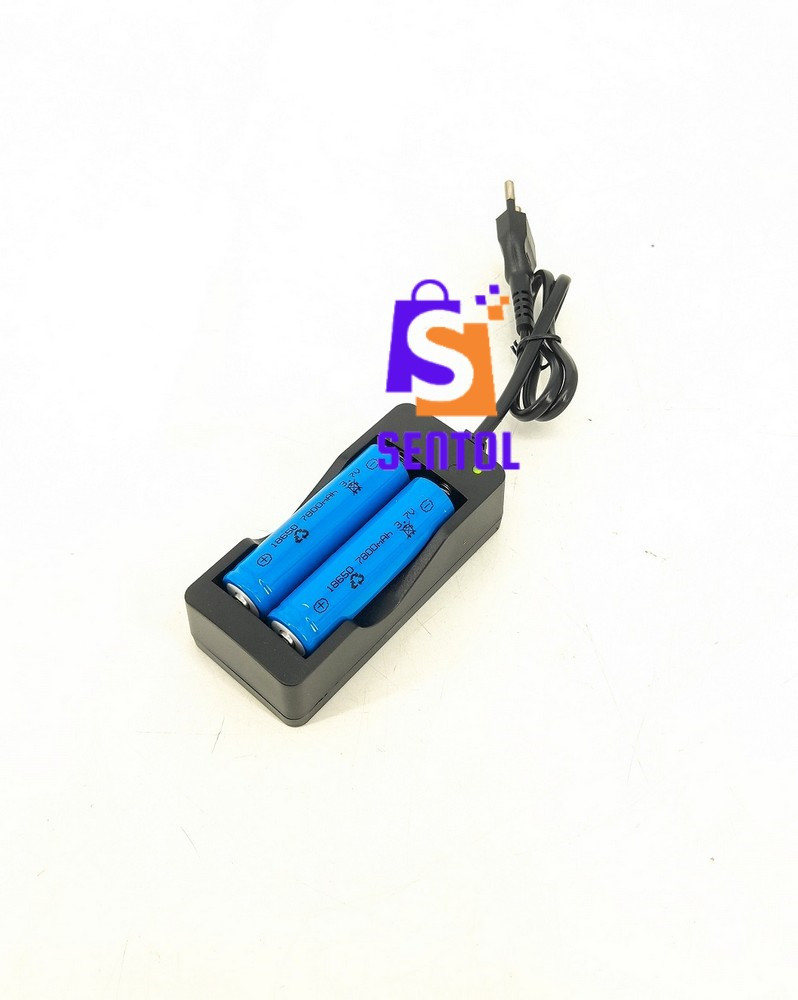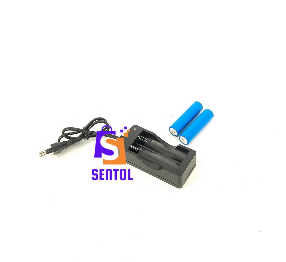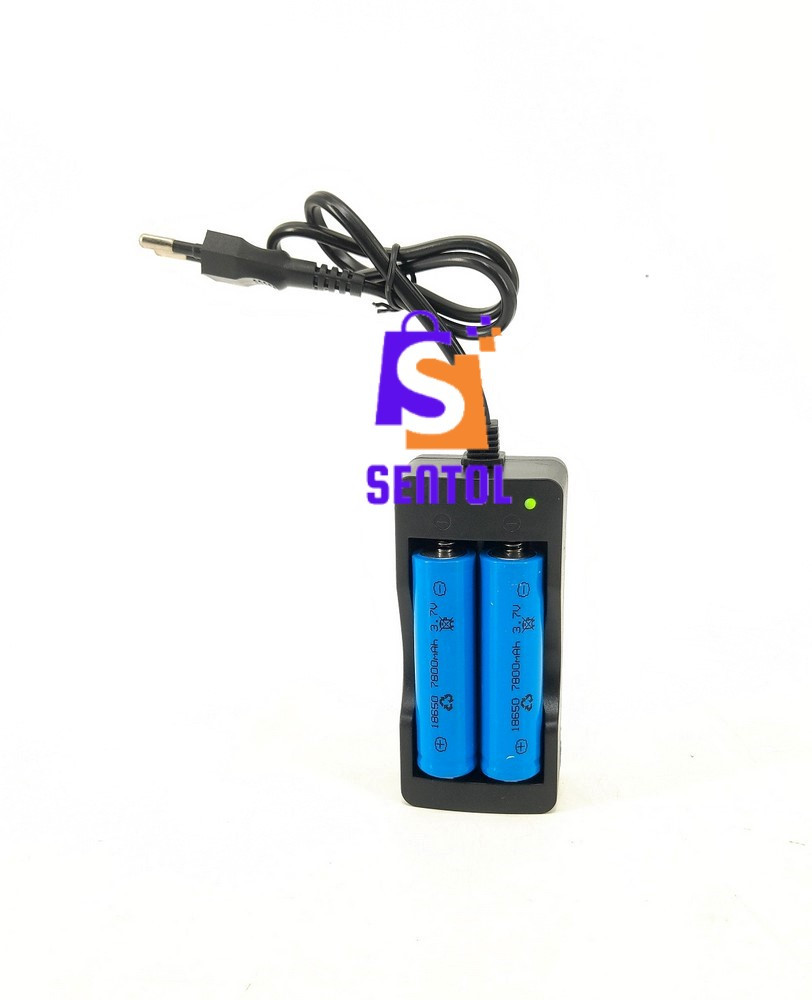 - Package includes: 1x charger, 2x 18650 batteries