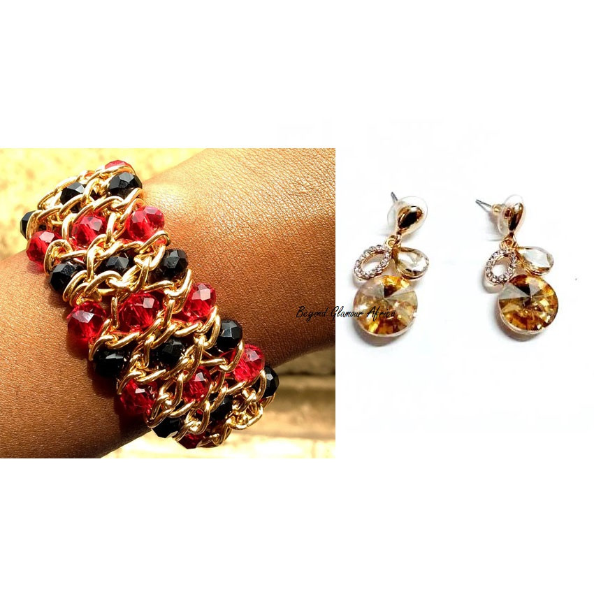 This bracelet is strung with sparkling crystals, has a beautiful light-catching effect, can be layered with your watch or other styles for an on-trend look.The Earrings comes up with a gift box