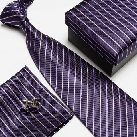3 in 1 Tie Pocket Square Cufflinks Tie Box Men Gift Set