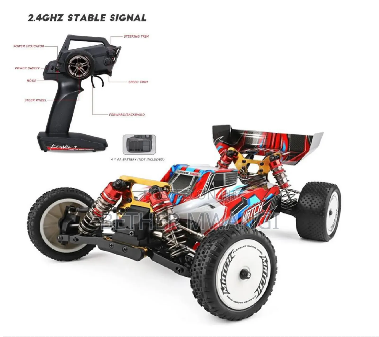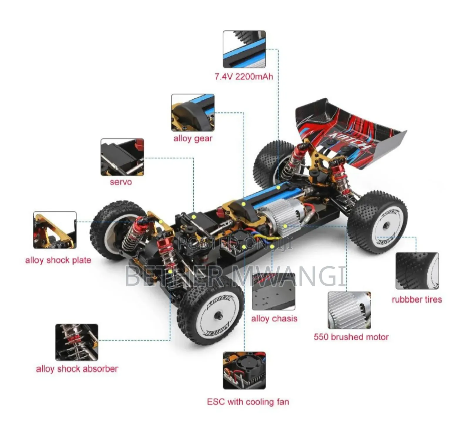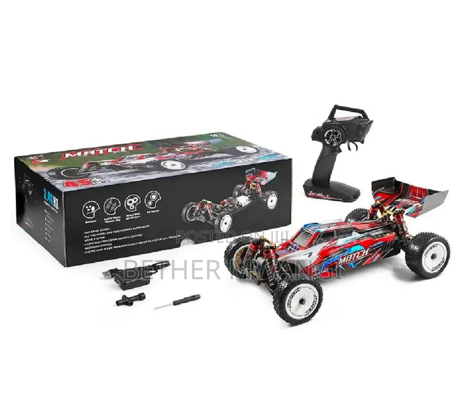 Antijamming capability allows us to race at the same time on the same track. The control distance is up to 100 meters. Conquer Various Terrains: The hardware oil pressure shock absorber and all-terrain adaptable tires ensure stable dynamic performance. Sand, meadow, mountain road, or rock road, none of them can stop the driving desire of your car. High Quality Material: Metal parts, high-strength aluminum alloy frame, and zinc alloy gears guarantee a long service life. You can DIY to upgrade it. Specifications: Material: Alloy+Plastic Speed: Up to 45Km/h Frequency: 2.4GHz Motor: 20000RPM 550 Motor Charge Time: About 3hours Work Time: About 7mins Control Distance: About 100m Car Battery: 7.4V 2200mAh Battery (included) Remote Controller Battery: 4* 1.5V AA Battery (not included) Car Size: 40.2*25.5*1 6.2cm