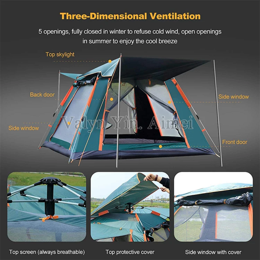 CONVENIENT FEATURES - The tent for beach features fiberglass poles, a removable rain fly to protect against unexpected weather, a ventilation window to encourage comfortable airflow, and an interior storage pocket to keep your camping supplies organized.