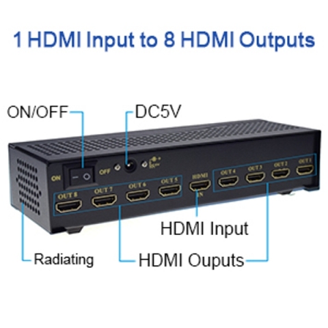 Multiple screens with one single HDMI source watch your video content on eight displays at the same time using this 1×4 HDMI Splitter.