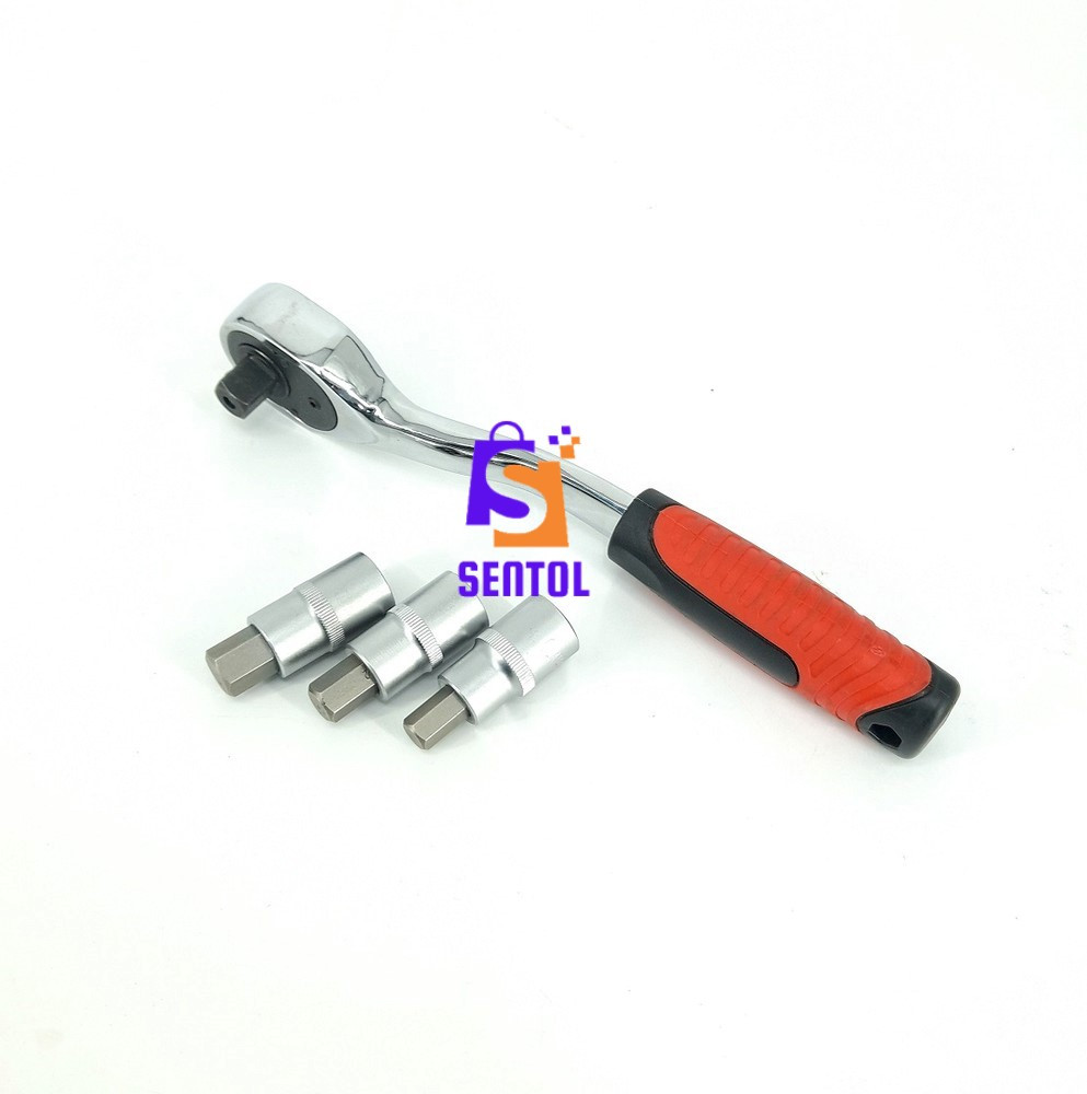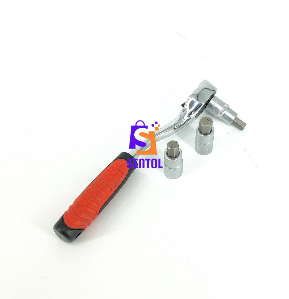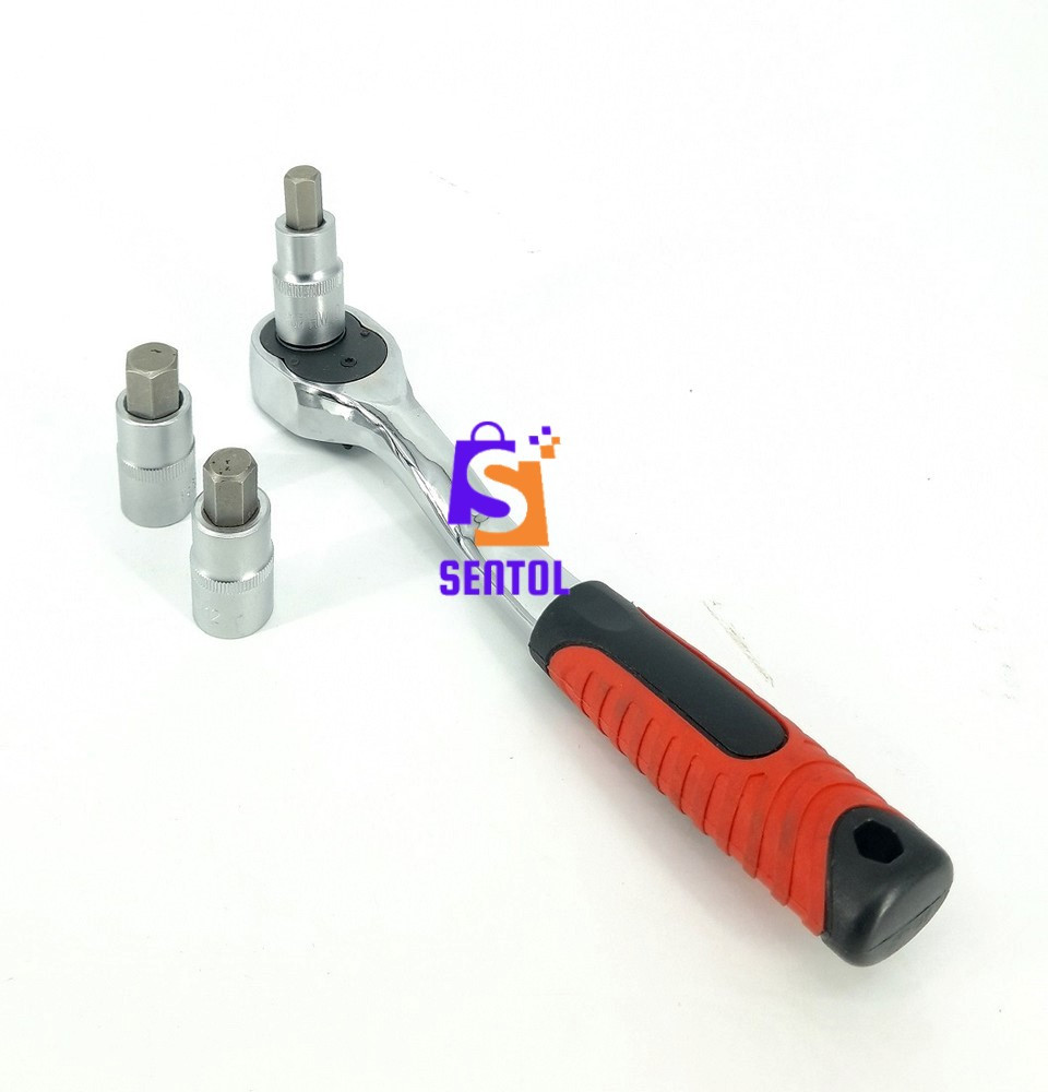 - Three S2 steel bits press-fit into the socket for a straight, permanent connection that can't loosen over time, and a 72-tooth extra heavy duty offset ratchet handle