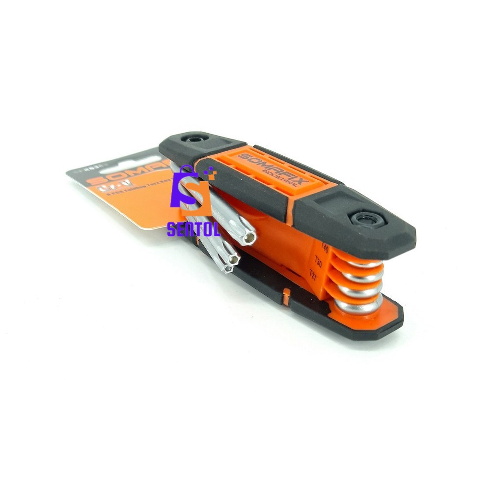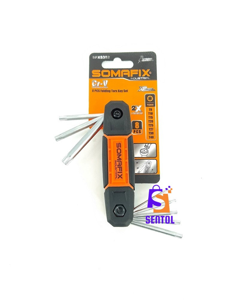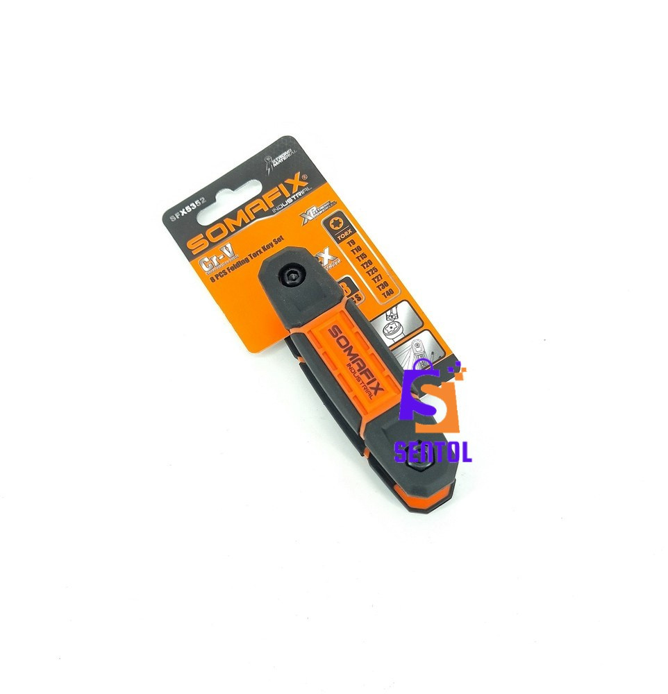 - 8 Tamper-proof folding star key set containing 8 star/torx keys including T-9, T-10, T-15 T-20, T-25, T-27, T-30, and T-40