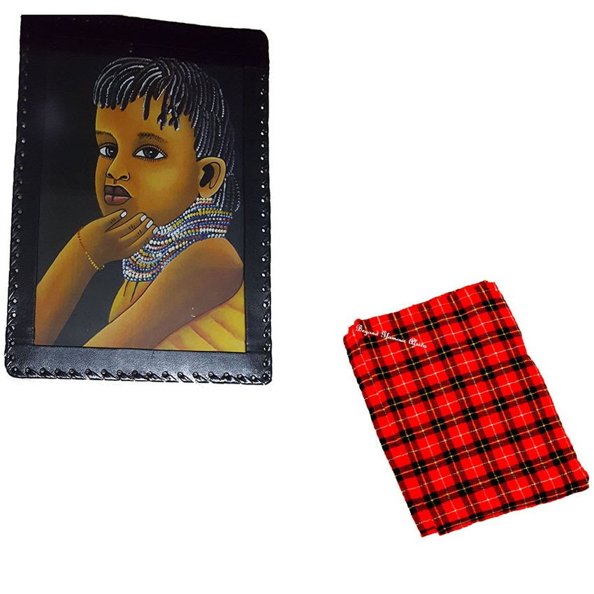 African Child Leather wall art with maasai shuka