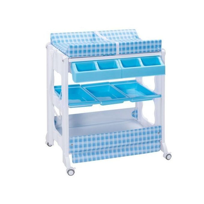 Conveniently convert the massaging/changing table in to bath table Offers the comfort and practicality of an elevated bathing and changing station. Constructed by thick stainless steel Four outward brake wheels makes it flexible to move Equipped with 4 compartments aside the table, you can place soaps, towels and any other accessories conveniently. Features soft and non-toxic foam and cushion.