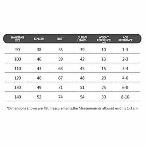 • Sizes: 90/1-2yrs, 100/2-3yrs, 110/3-4yrs, 120/4-6yrs, 130/6-8yrs and 140/8-10yrs. Please see size chart in images.