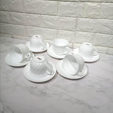6+6pcs cup ▫️ Material:Ceramic. ▫️Color: White. ▫️ Absolutely hygienic. ▫️ Dishwasher safe. ▫️ Microwave safe. ▫️Size:13.8cm