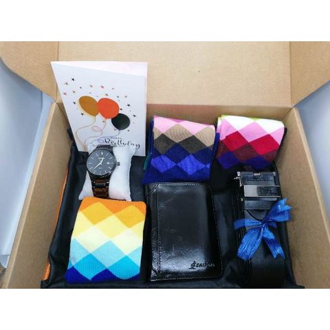 Gift Hamper with Watch, Wallet, Belt and 3 Pairs of Happy Socks