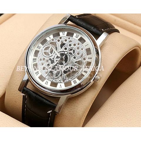 Ladies leather Black skeleton watch