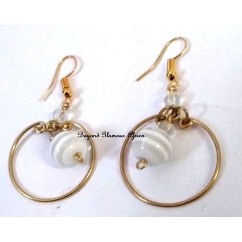 Brushed in an antiqued finish, edgy geometric patterns climb a glistening brass teardrop for a trendy tribal look. Earring attaches to a standard fishhook fitting.