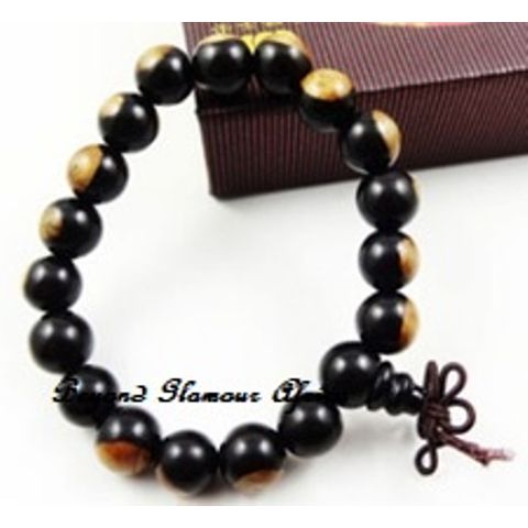 Ladies Black Cream Wooden Shamballa bracelet