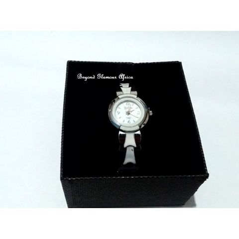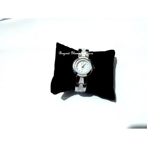 silver tone adjustable bracelet analog watch. withstands splashes and brief immersion in water