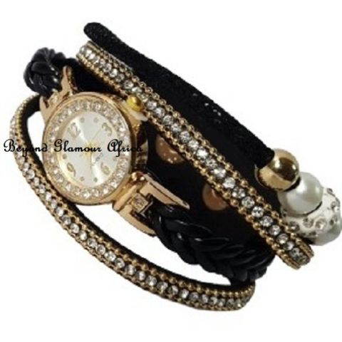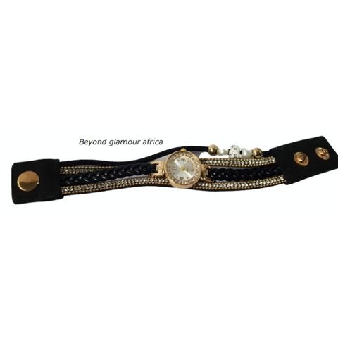 Ladies black bracelet Leather watch