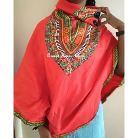 Maroon Dashiki Poncho