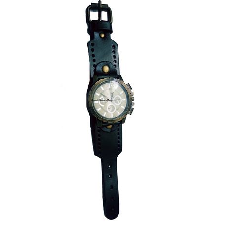 Genuine  leather band with buckle closure . multifunctional watch with stopwatch functionality, three step dials to track track hours,minutes and seconds.