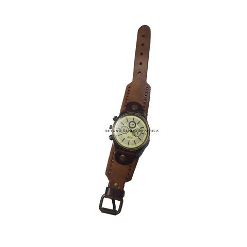 Genuine  leather band with buckle closure . multifunctional watch with stopwatch functionality, three step dials to track track hours,minutes and seconds.