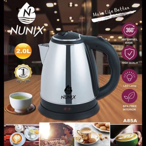 Nunix Stainless Steel 2.0L Cordless Kettle - Silver