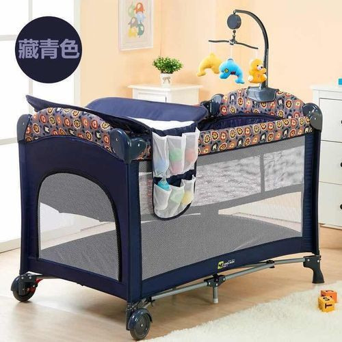 High quality, European standard Diaper changing station for quick and convenient diaper changes Features a hunger with three cute toys to amuse your baby Has a mosquito net to keep out bugs/flies/mosquitoes Brakes on two wheels increase safety and convenience Roomy and ventilating recreational area for comfortable rest or play Easy set-up and take-down for easy transportation and storage Double-layer design make this baby crib could be applied to babies of different ages Convenient carrying bag for no-fuss travel so that you could bring this gorgeous playpen to anywhere you want
