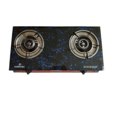 Rashnik RN-1518, 2 Burner Glass Top Gas Stove - Black