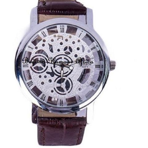 Unisex Maroon leather skeleton watch