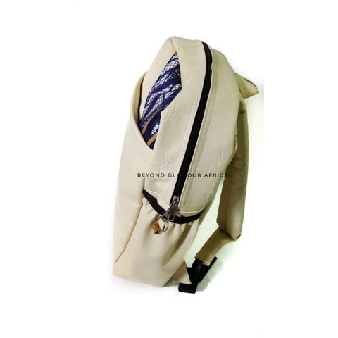 White Leather Ankara Laptop Bag