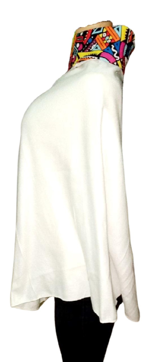 poncho , a high neck with chunky buttons,the poncho is made of soft cotton to keep you warm and comfortable,its one size hence fits all body types,it goes well with all outfits colors and design,stay trendy
