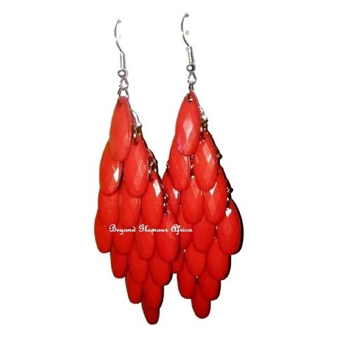 Womens Red Crystal chandelier earrings