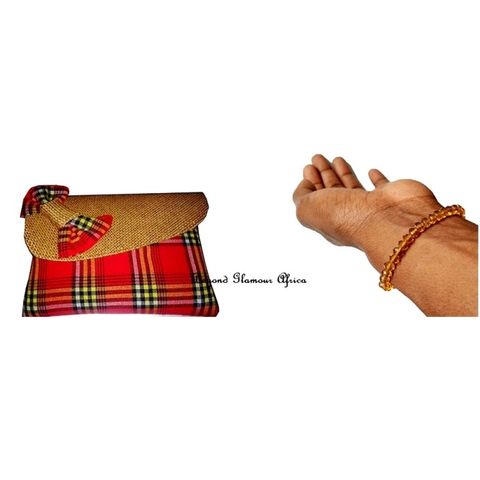 Womens red maasai cutch bag with orange crystal bracelet