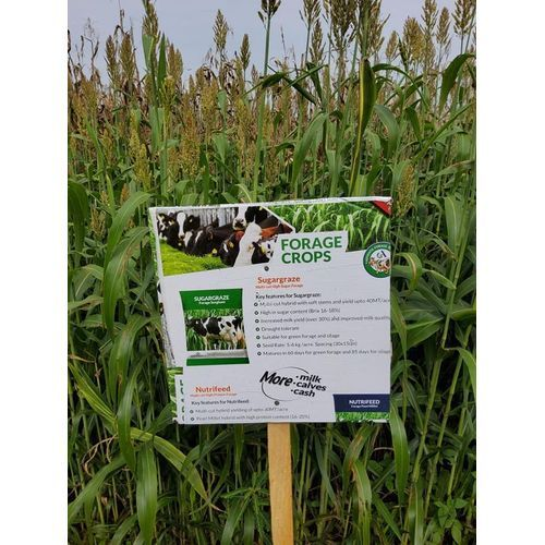 Sugargraze is a sweet sorghum with excellent sugar levels. A high quality cow feed because of the nutritive value and high energy sources. Over 18% crude proteinIncreases Milk production and quality Increases Milk yield (Over 30%)Multicut, sweet Stem forage sorghum hybrid with brix 16% to 18%Soft Stems with soft internodes, high palatability, less wastage, suitable for silage and Hay MakingDrought toleranceGrows up to 2.5 mts height with no lodgingHigh yielding up to 40Mt/Acre per harvestSeed rate 5 - 6kg per acreMatures in 60 days for green forage and 85 days for silage
