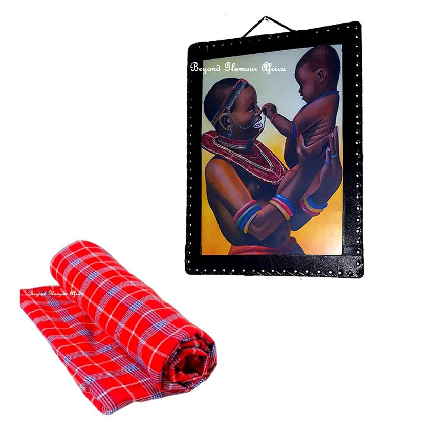 Leather Framed canvas wall art picture print . quality you'll love with leather frame & vivid colours . this beautiful canvas wall art will brighten up your home.Comes with a maasai shuka