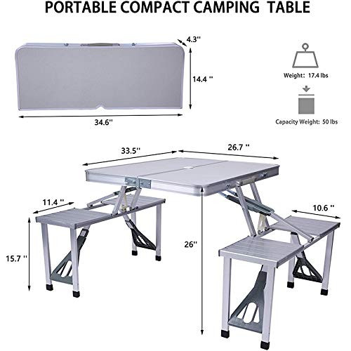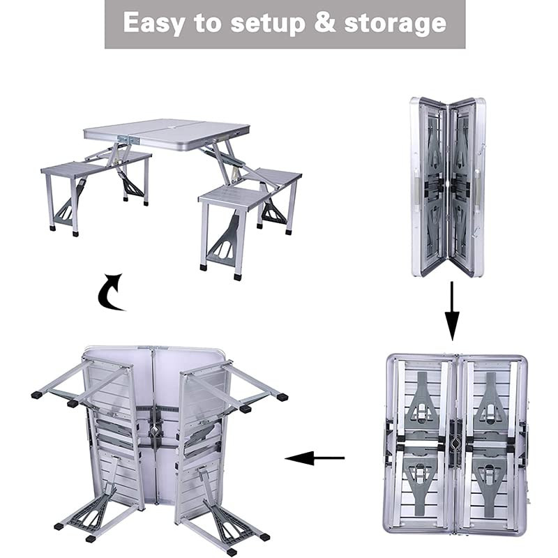 • Foldable Design: The foldable and lightweight design make the camp table easy to store and open,you can take it to anywhere and doesn't take up space for storage when not in use,the table and four seats can connected together to fold into a suitcase.