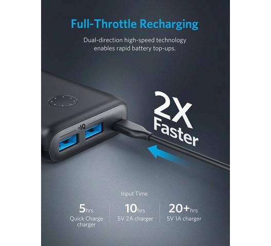 • Get the fastest charging speed of 18W when charging a single device, and 12W at each port when charging two devices.