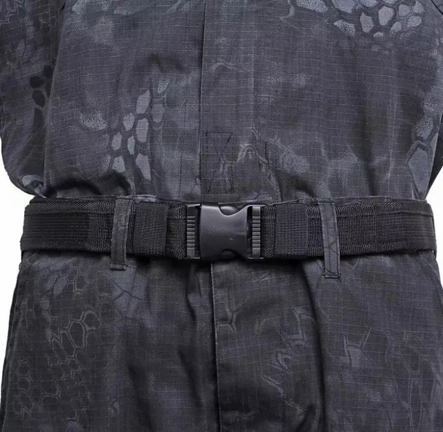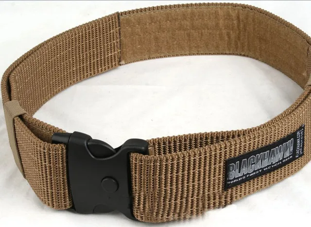 BLACKHAWK!'s CQB/Rigger's Belt offers parachute grade buckles and adapters, 1.75” webbing (7,000 lb tensile strength), and includes a hook and loop that secures running end. The belt is offered in four colors: Coyote Tan, Desert Sand Brown, Black and Olive Drab. the belt is measured from the buckle where it attaches to the belt, to the angled tip of the belt, it should measure about 3 to 4 inches longer that the advertised length