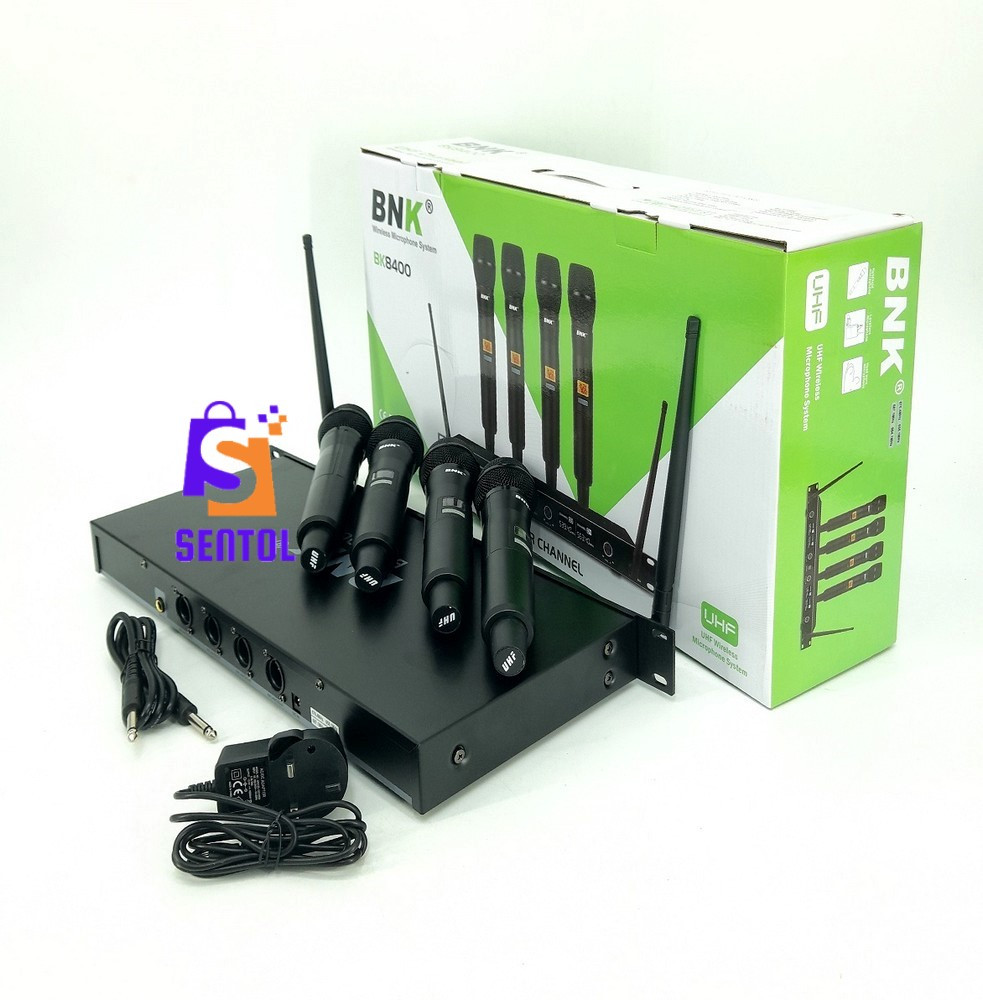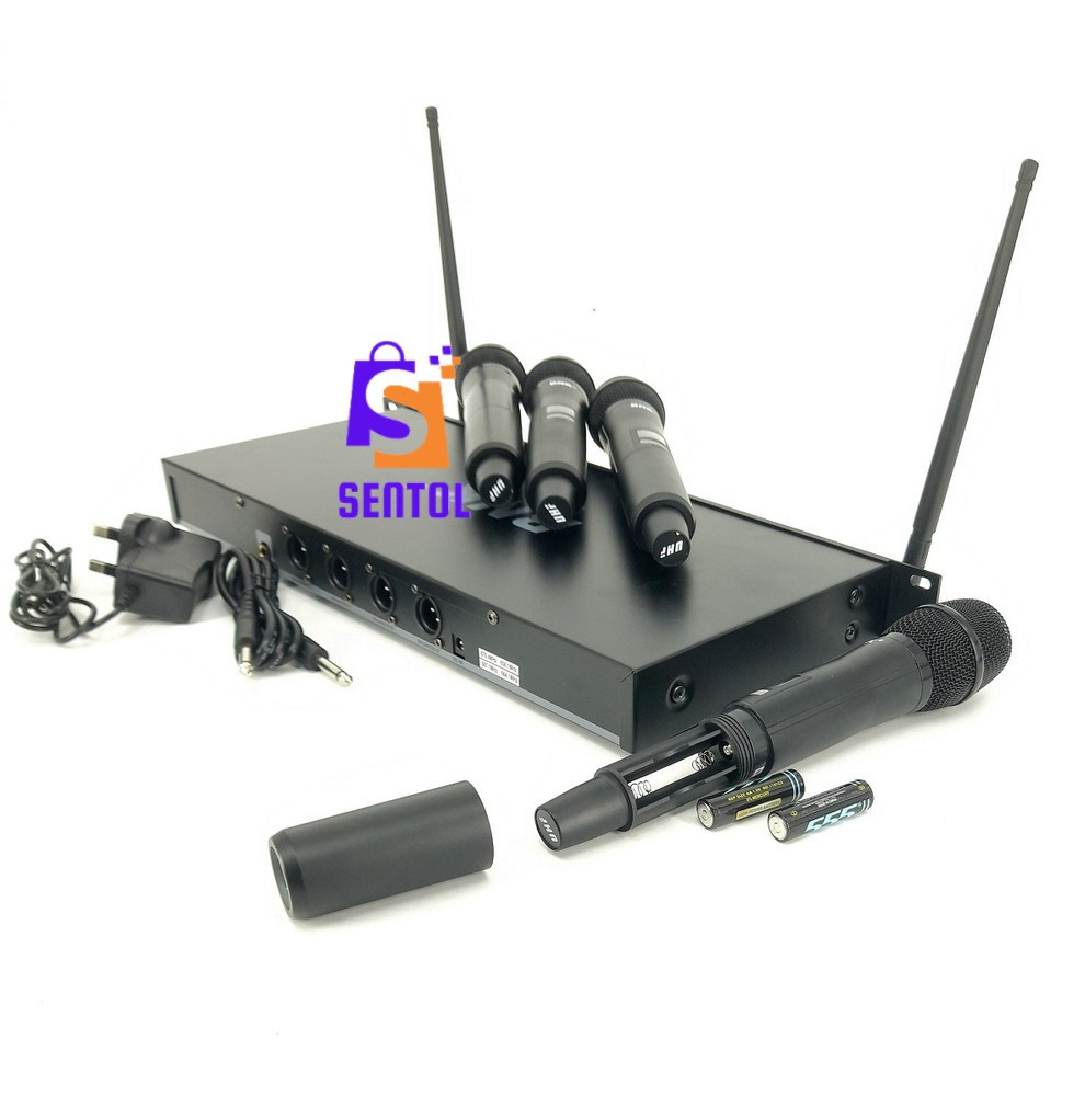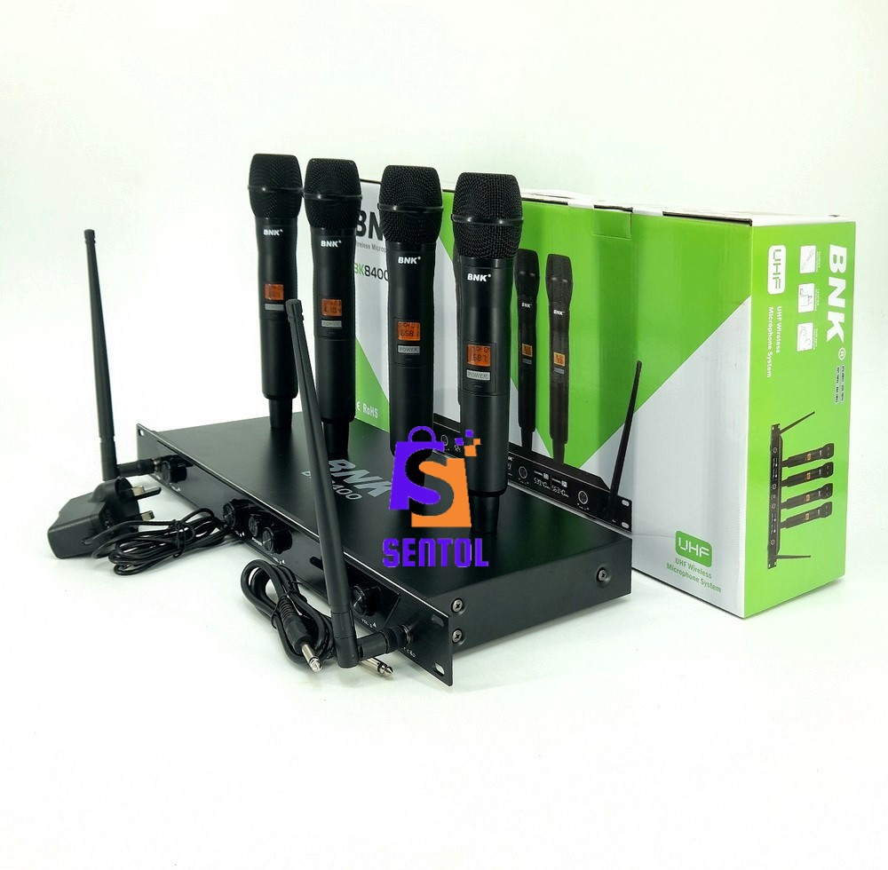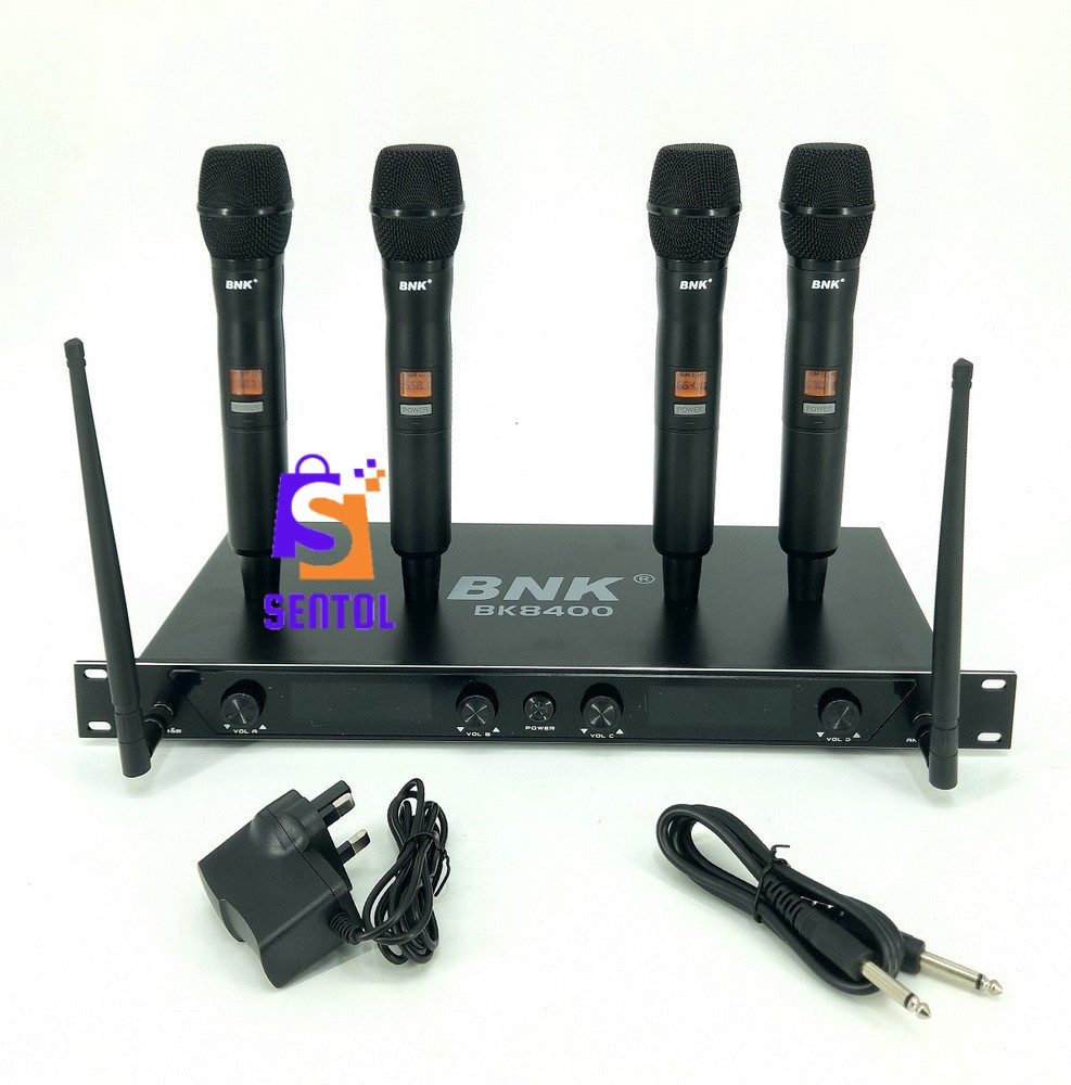 - 4 Channel UHF Wireless Microphone System with 4 Wireless Handheld Microphones
