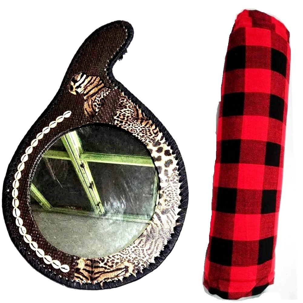 Brown Print Leather Africa Mirror with maasai shuka