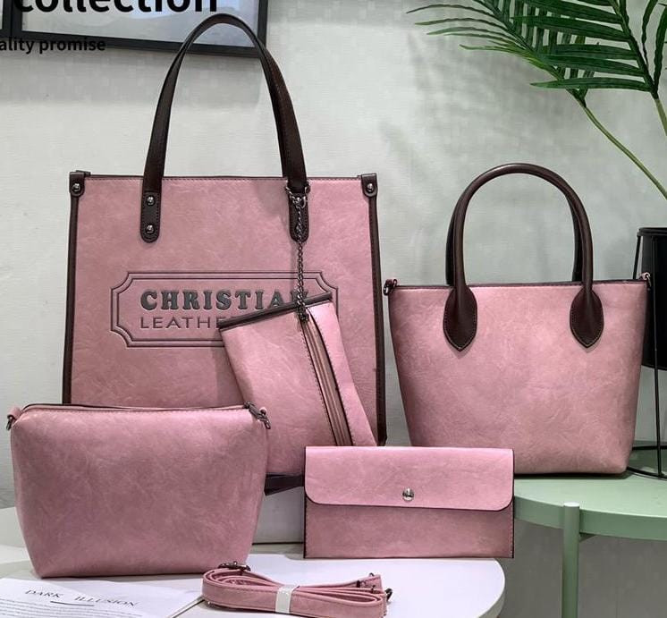 CHRISTIAN LEATHER 5 In 1 Handbag Women Bag Ladies Purse Tote Hobo Bag Female Crossbody Bag Messenger Shoulder Bag Sling Wallet Satchel - Pink