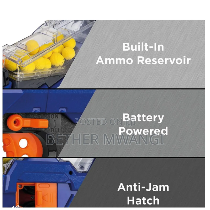 Safe for kids to play with, bullets are very soft and does not cause bruising when it contacts the skin. Bullets are reusable, fire pick and reload. If the bullet accidentally gets stuck in the barrel, there is a special window that can be opened by removing the bullet Turn the power button to the On position and the blaster is ready for play The ammo magazine is located at the top of the blaster. To reload it, you need to open the lid and place the bullets in the magazine; after that you need to make sure that the lid is tightly closed.