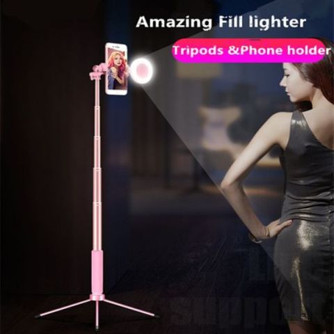 1X Selfie Stick LED Ring light Extendable live Tripod 1.5m Stand 4 in 1 With Monopod Phone Mount for iPhone X 8 Android smartphone