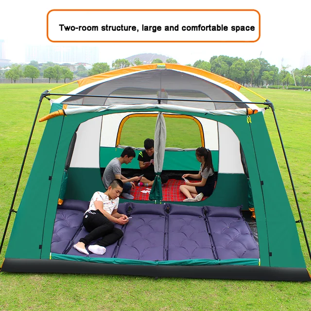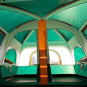 • Large space:Inside dimension14.1ftlength*10ft width*6.58ft height, fit 4 full air mattresses(6.7ft*5ft/200cm*150cm),can accommodate 12 person.straight wall design, interior space is larger and more comfortable.