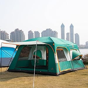 Extra Large Tent 10-12-14 Person(B),Family Cabin Tents,2 Rooms,3 Doors and 3 Windows with Mesh,Straight Wall,Waterproof,Double Layer,Big Tent for Outdoor,Picnic,Camping,Family Gathering