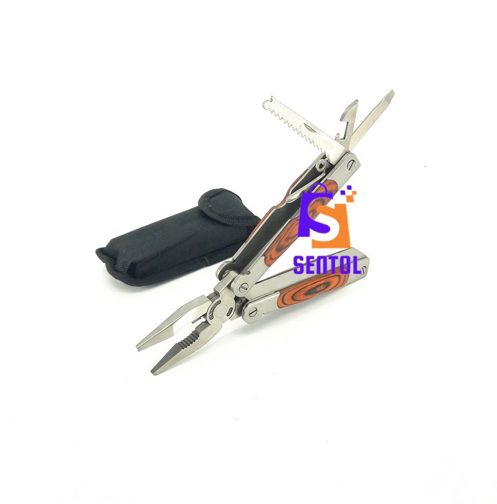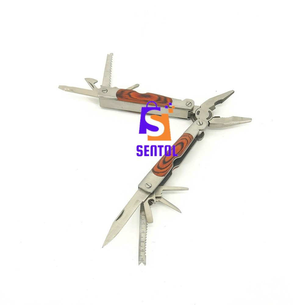 - Best wood handle multitool with 14 in 1 functions including knives, pliers, and other utility tools
