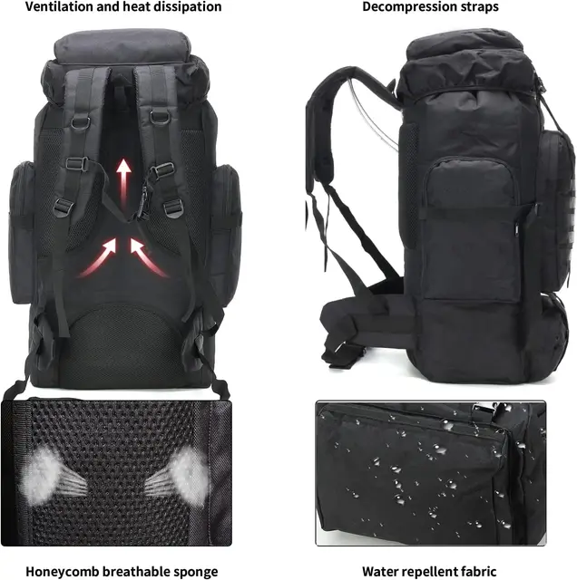 • 【Waterproof and Breathable Fabric】: The 100l tactical military backpack is made of 905D Oxford cloth fabric and waterproof material. The military backpacking bag thick density Tear Resisten Oxford cloth fabric is waterproof and wear-resistant, and the texture is tough and odorless. For traditional hiking backpacks, belts and high-quality zippers are better with durability and scratch resistance.
