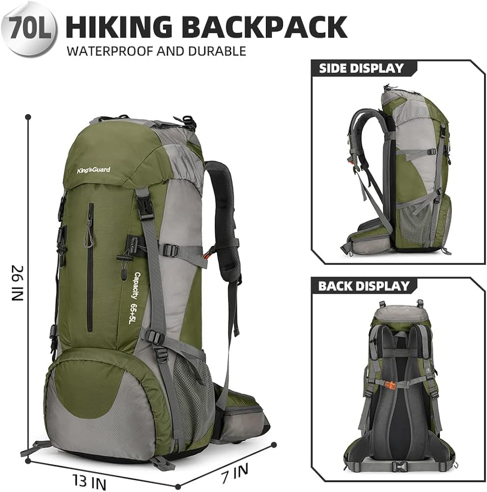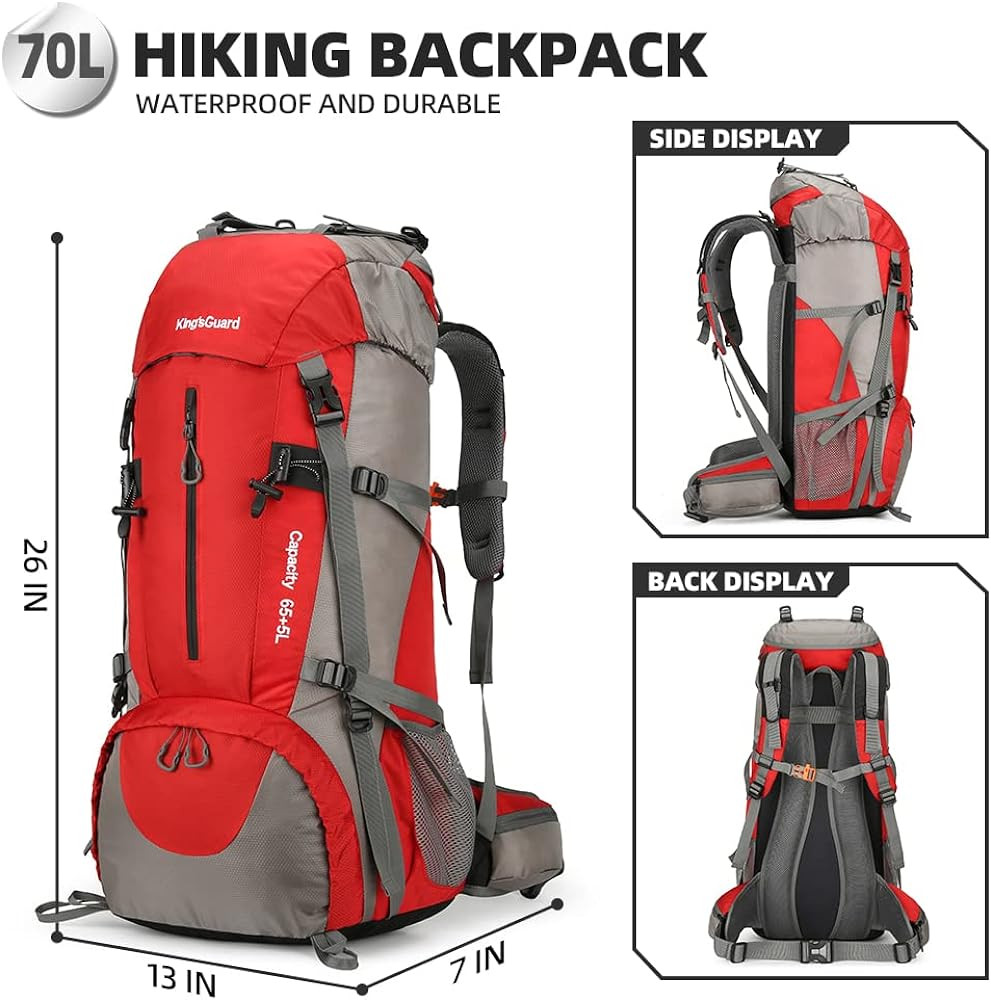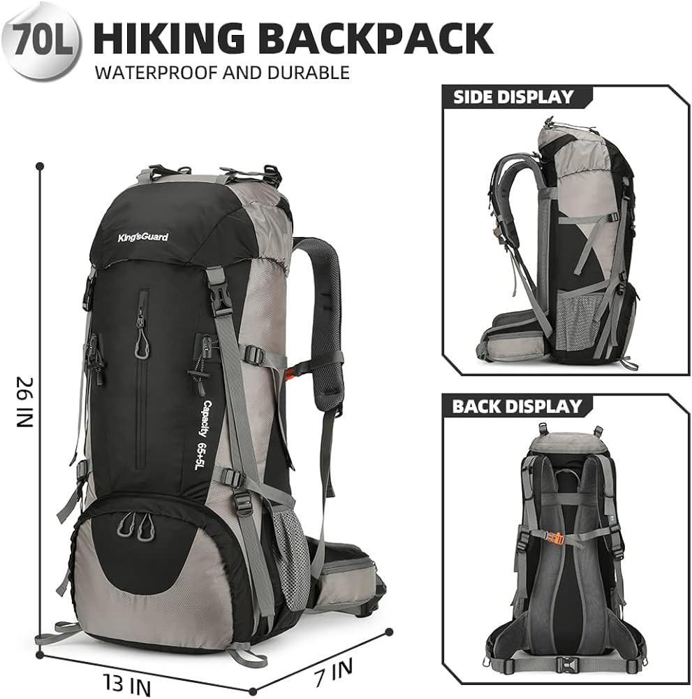 【After-sales Guarantee】The kings guard 70l hiking camping backpack with rain cover is of high quality, sturdy and thick. If you have any pre-sales or after-sales