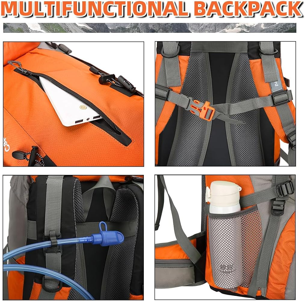 【65+5L Backpack】The capacity of large camping backpack is 70 liters, size is 23.6 * 11.8 * 7.9 inch, it meets the size requirements of most airlines, an ideal travel backpack for 3-5 day adventure, a must-have backpack for hiking, backpacking, trekking, climbing/mountaineering and cycling for women and men.