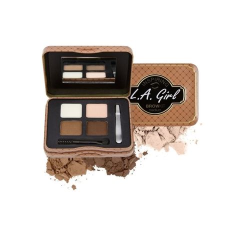LA Girl Inspiring Brow Kit tin is packed with two brow powder shades, a flattering highlighter shade and a clear wax. It also includes tweezers and an angled brush with spoolie all the necessities needed for beautiful brows.